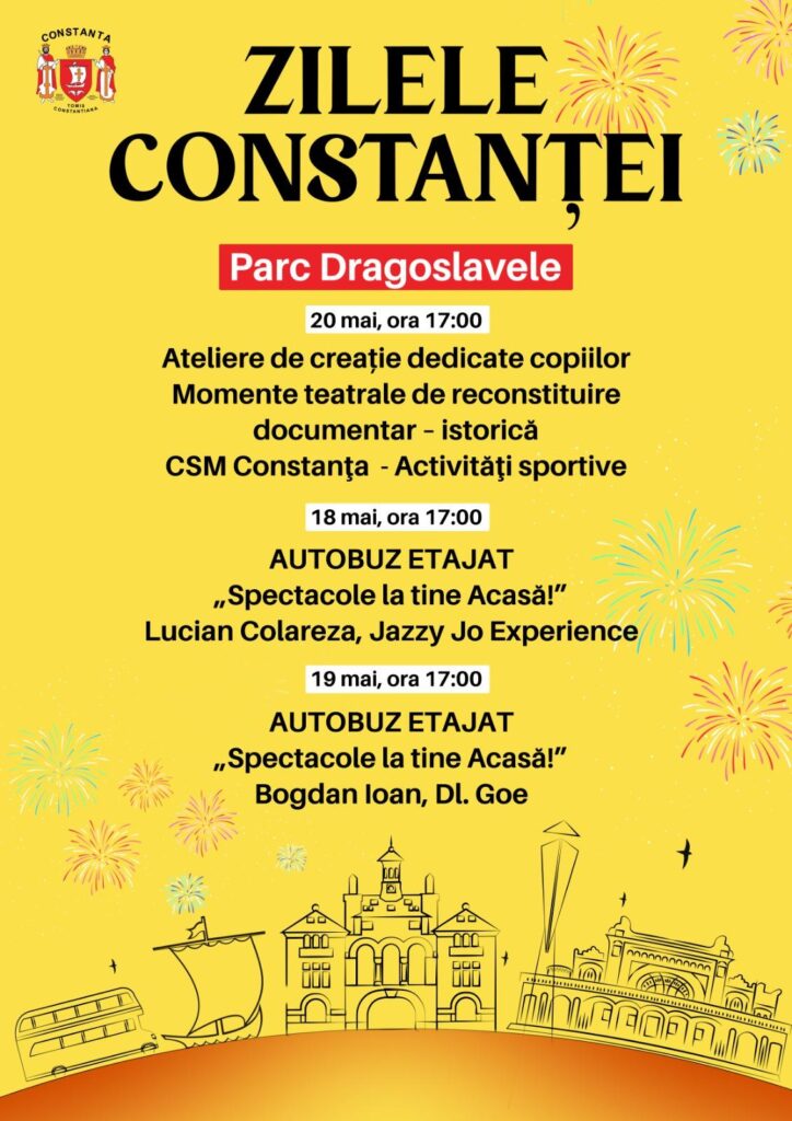 * 17:00 – Parc Dragoslavele – ateliere de creație dedicate copiilor + momente teatrale de reconstituire documentar-istorică”, iar CSM Constanța organizează activități sportive
