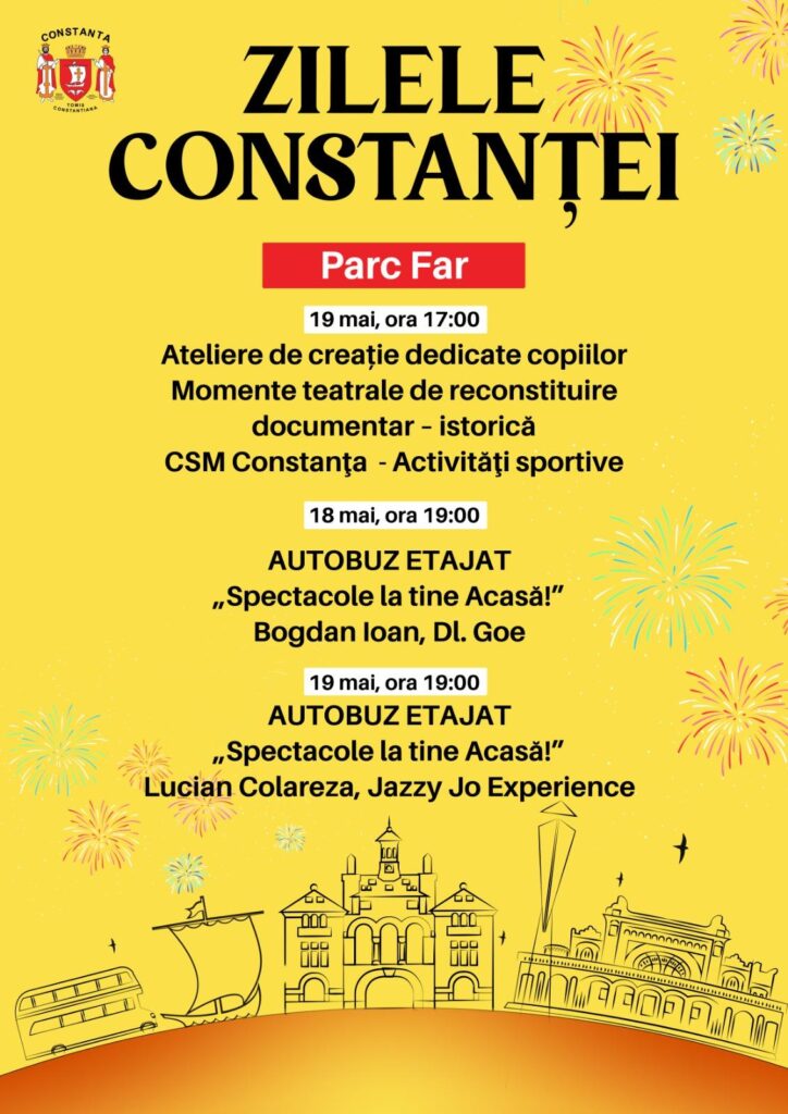 * 17:00 – Parc Far- ateliere de creație dedicate copiilor + momente teatrale de reconstituire documentar-istorică”, iar CSM Constanța organizează activități sportive