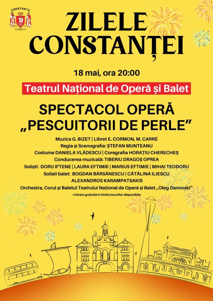 * 20:00 – Teatrul Național de Operă și Balet – spectacol operă “Pescuitorii de perle” • 20:00 – B-dul. Tomis Kiss Kiss in The Mix în autobuzul etajat